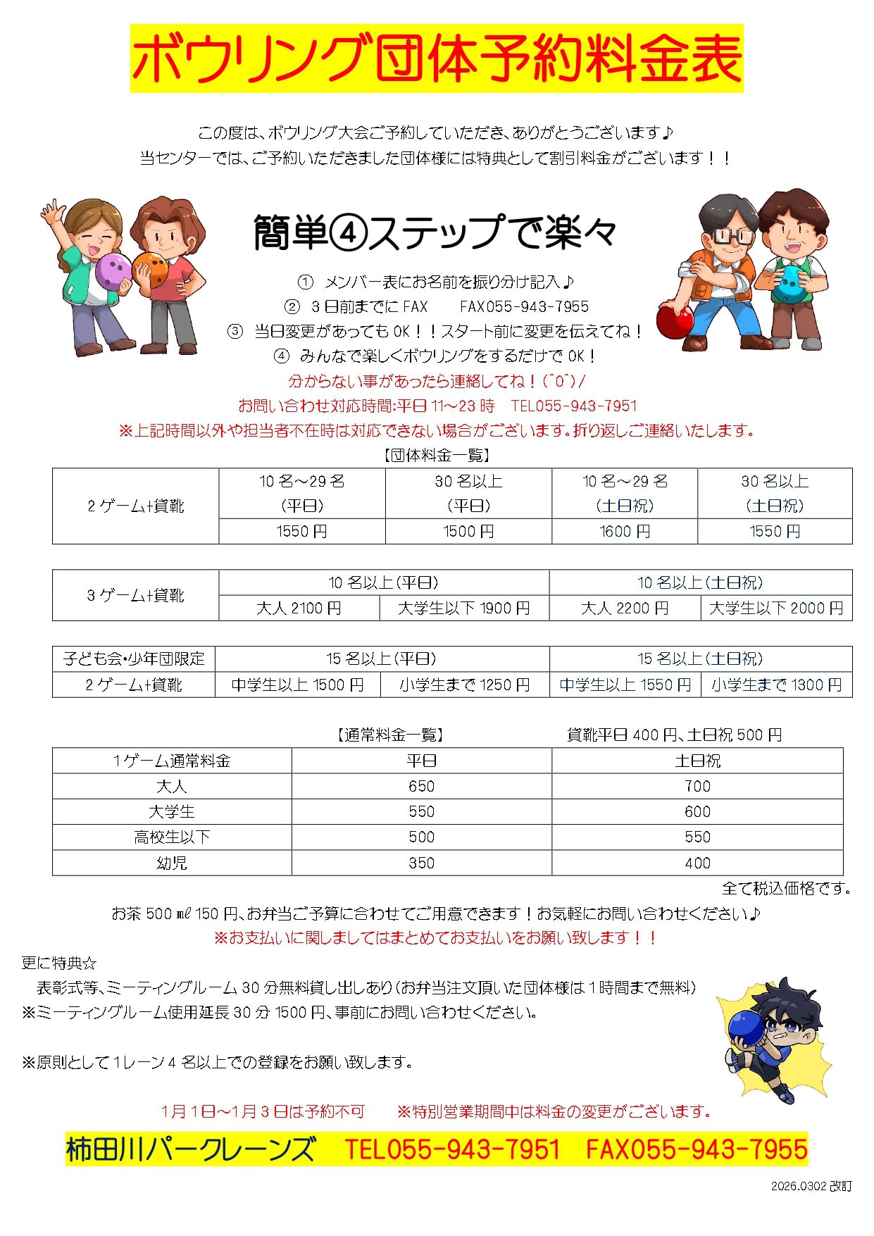 静岡県清水町のボウリング場柿田川パークレーンズ Home 5 ボウリング場一覧 5 柿田川パークレーンズ 柿田川パークレーンズお知らせ・キャンペーンNEWS・EVENT 柿田川パークレーンズ大会・イベント情報TOURNAMENT 毎週水曜日・柿田川パークレーンズ・藤村重定プロと投げよう♪ 柿田川パークレーンズ店舗詳細SHOP INFO 055-943-7951 web予約はこちら 団体様・メンバー表ダウンロード 一般用▼ 子ども会用▼ フォローフォローフォローフォロー 店舗詳細料金表割引券ギャラリー予定表 営業時間 【年中無休】10:00~24:00 住所 〒411-0902 静岡県駿東郡清水町玉川61-2 サントムーン柿田川本館 2F 電話番号 055-943-7951 FAX 055-943-7955 クレジット・電子決済 料金表 パック料金 投げ放題 団体予約 ボウリング団体予約料金表2026.03.01 卓球 特別クーポン 柿田川パークレーンズ所属プロボウラーPRO BOWLER 藤村 重定プロ JPBA4期生 ライセンスNO,102 タイトル プロ入り 1968年 所属店舗 N&K co., Ltd.柿田川パークレーンズ 資格 日本プロボウリング協会公認A級インストラクター日本スポーツ協会コーチ1 平尾 勉プロ JPBA 23期生 ライセンスNo.517 座右の銘【CAN DO】 タイトル プロ入り 1984年 所属店舗 N&K co., Ltd.柿田川パークレーンズ 資格 日本プロボウリング協会公認B級インストラクター 株式会社N&K運営のボウリング場一覧BOWLING SHOP 都留ファミリーボウル ボウリング施設について ProShopP1都留店 ProShopP1について カラオケスタジアム都留店 カラオケスタジアムについて LINE公式アカウント LINE登録はこちら 弘前ファミリーボウル ボウリング施設について ProShopP1弘前店 ProShopP1について カラオケスタジアム弘前さくら野店 カラオケスタジアムについて LINE公式アカウント LINE登録はこちら 柿田川パークレーンズ ボウリング施設について ProShopP1柿田川店 ProShopP1について 遊キッズサントムーン柿田川店 遊キッズについて LINE公式アカウント LINE登録はこちら 狐ヶ崎ヤングランドボウル ボウリング施設について ProShopP1狐ヶ崎店 ProShopP1について LINE公式アカウント LINE登録はこちら ヤングファラオ ボウリング施設について ProShopP1長野店 ProShopP1について LINE公式アカウント LINE登録はこちら 幸田セントラルボウル ボウリング施設について ProShopP1幸田店 ProShopP1について LINE公式アカウント LINE登録はこちら フォローフォローフォローフォローフォロー