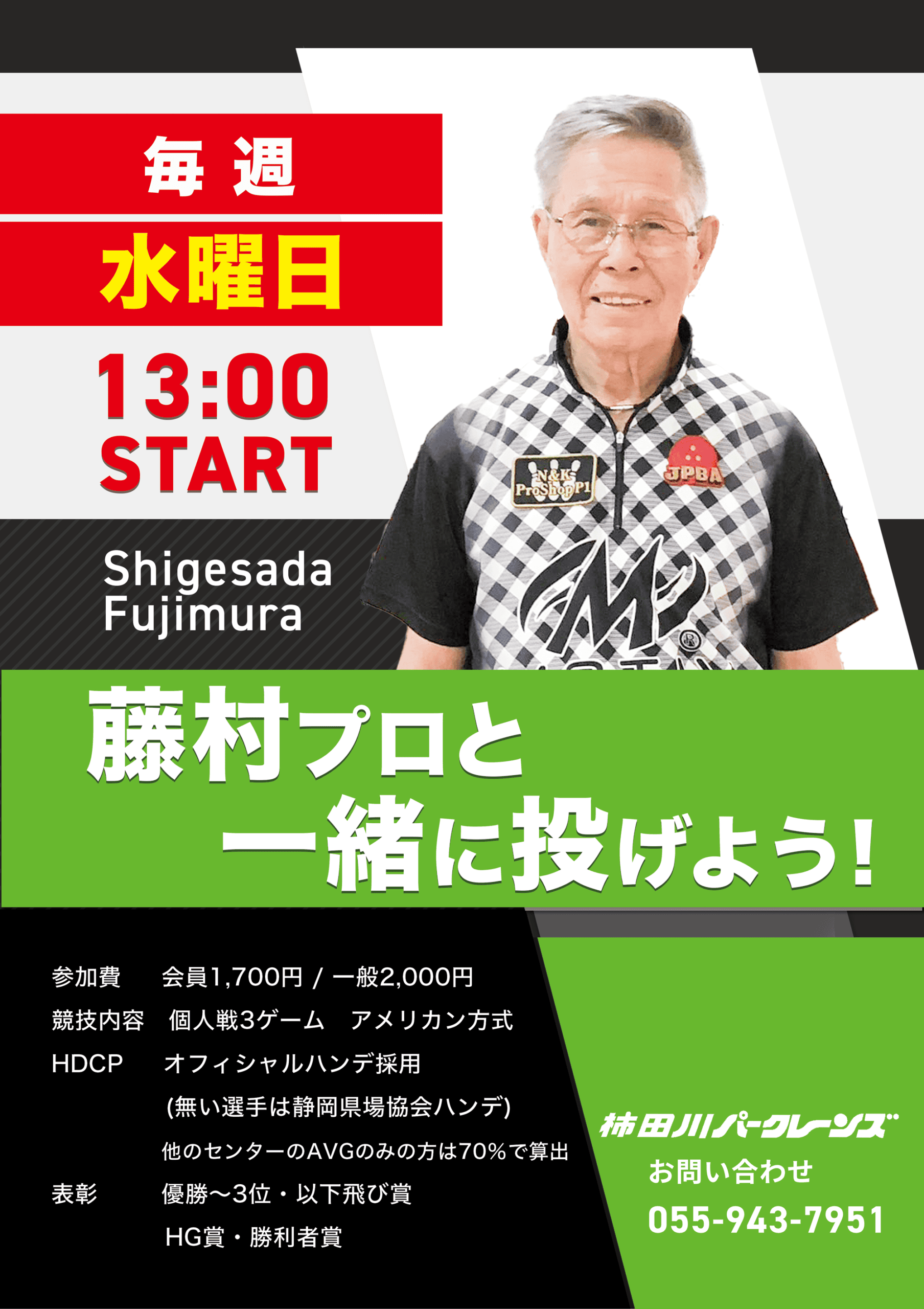 毎週水曜日・柿田川パークレーンズ・藤村重定プロと投げよう♪