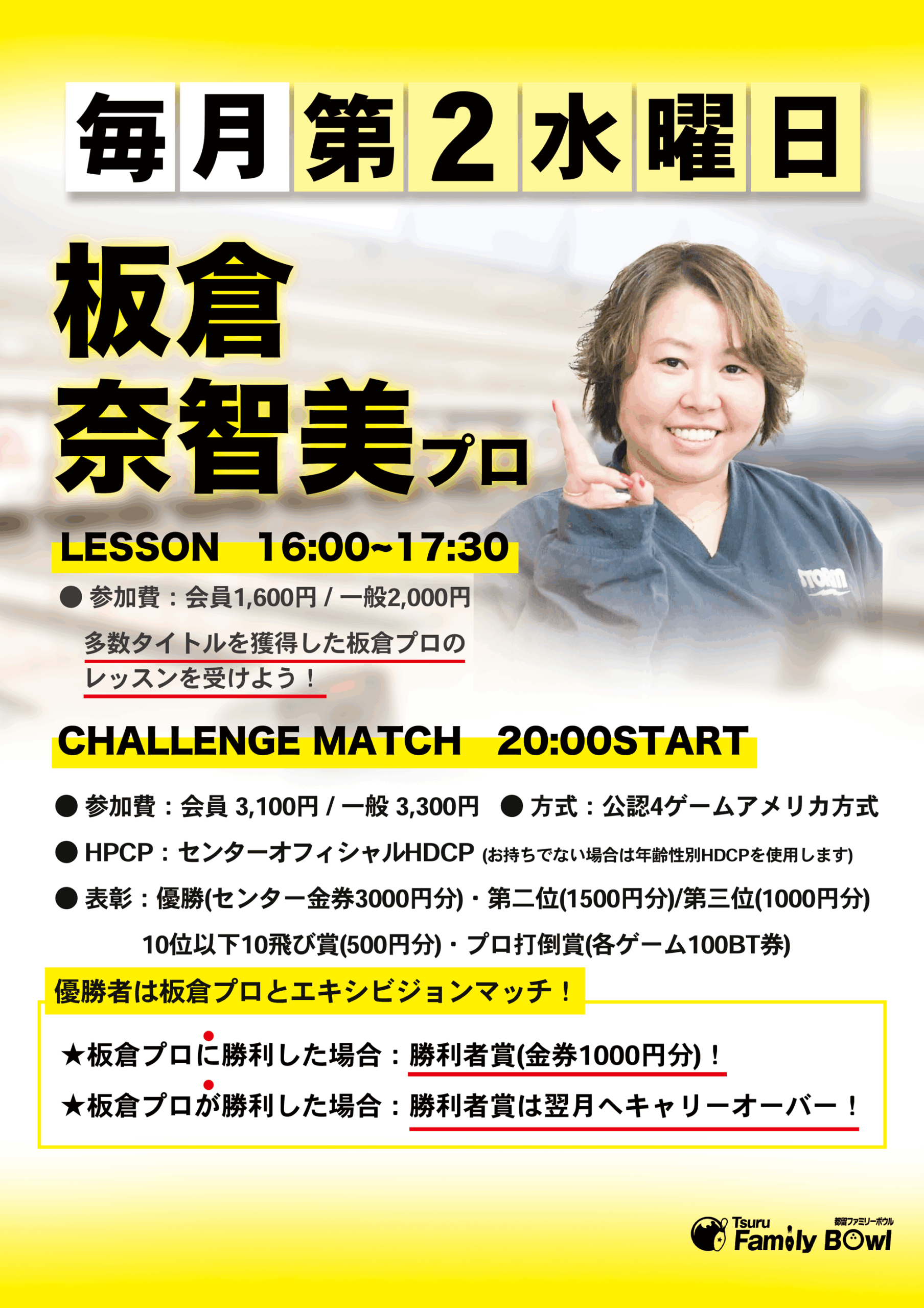 毎月第2水曜日・都留ファミリーボウル・板倉奈智美プロレッスン&チャレンジ