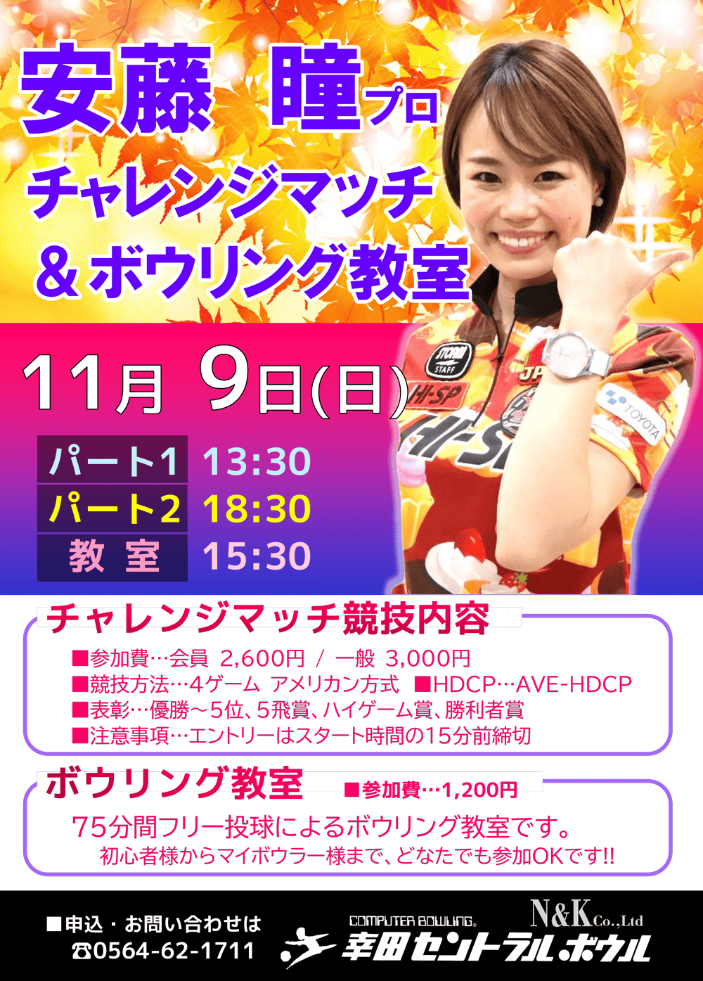 【幸田セントラルボウル】11/9・安藤瞳プロチャレンジ &教室