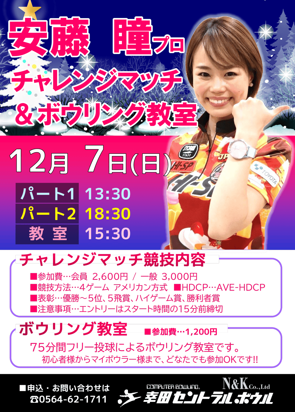 12/7(日)・幸田セントラルボウル・安藤瞳プロ・チャレンジ&教室