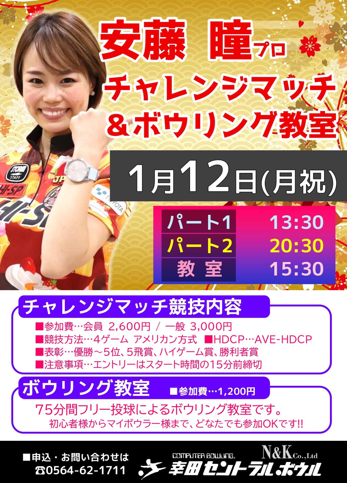 1/12(月祝)・幸田セントラルボウル・安藤瞳プロチャレンジ&教室