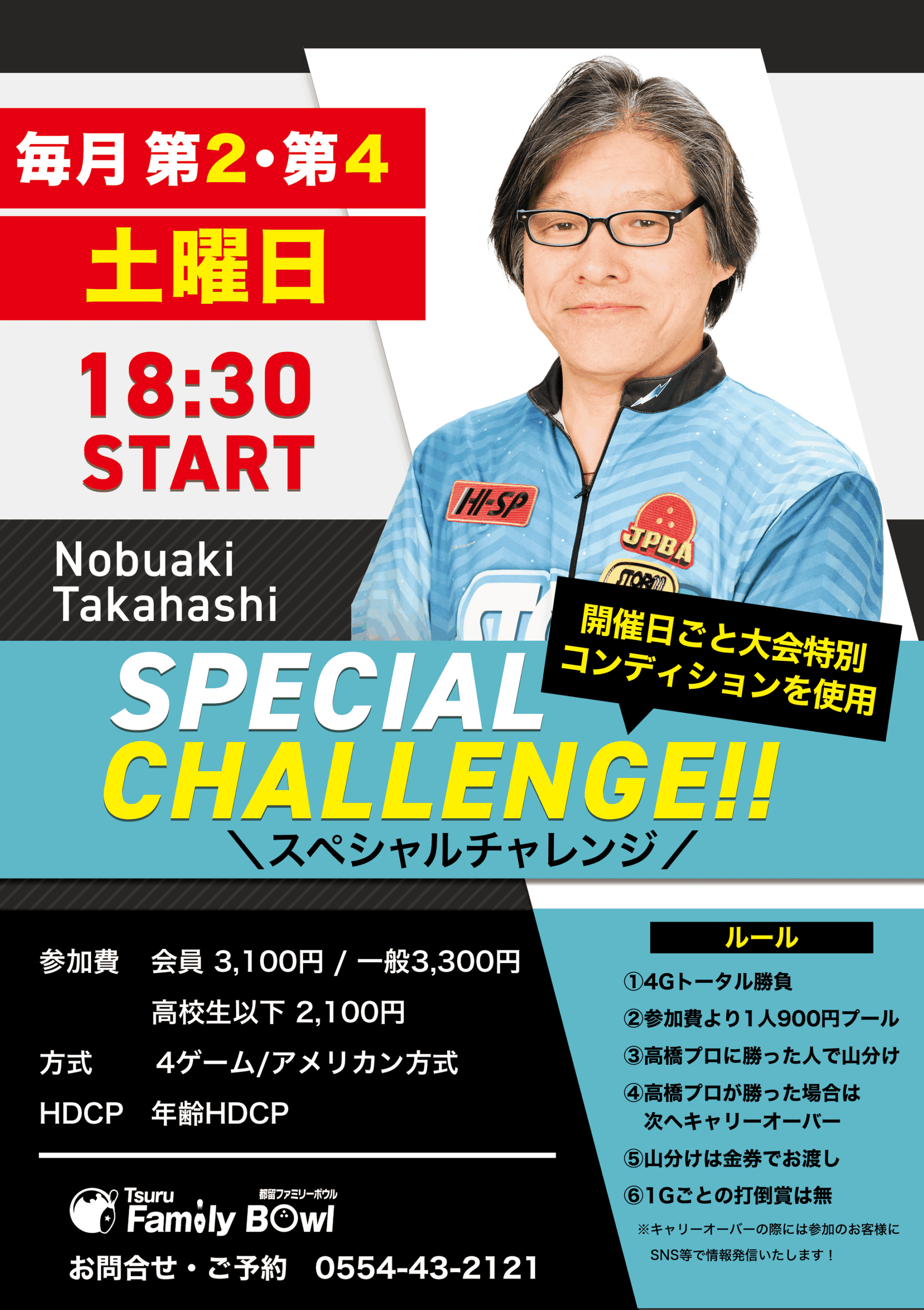 毎月第2・4土曜日・都留ファミリーボウル・高橋延明プロスペシャルチャレンジ