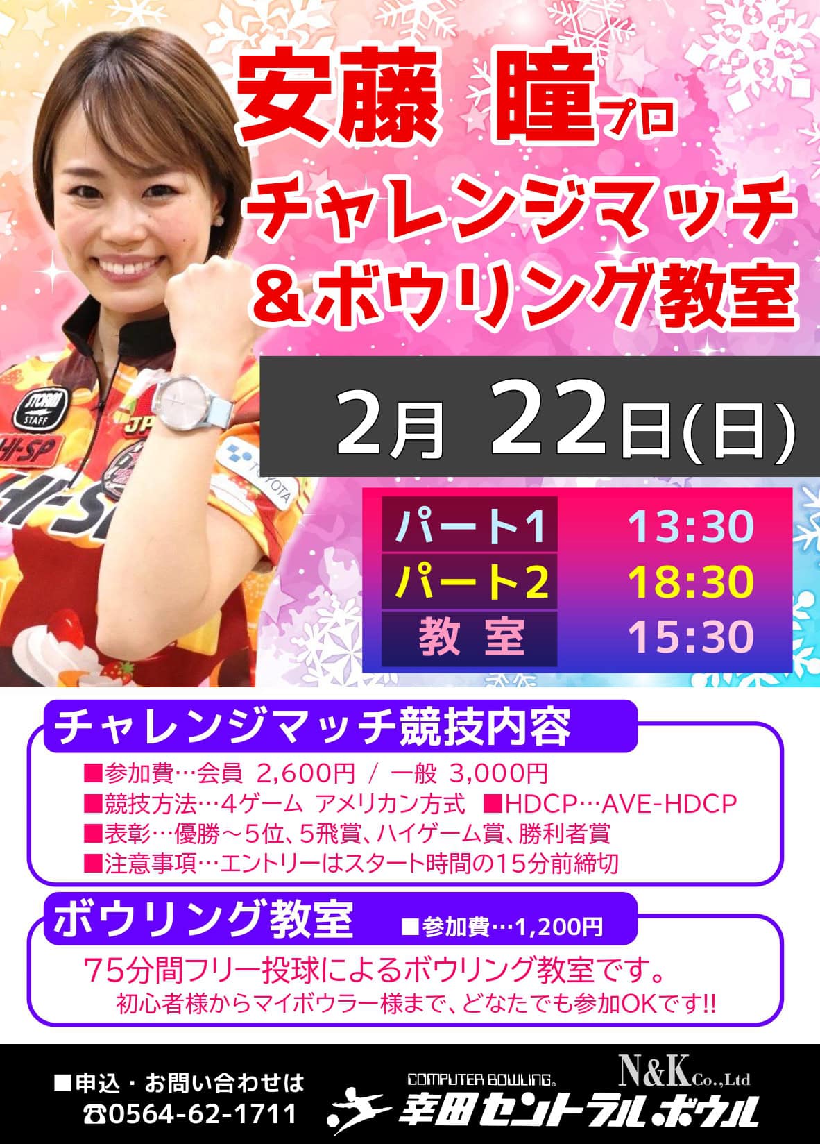 2/22(日)・幸田セントラルボウル・安藤瞳プロチャレンジ&教室