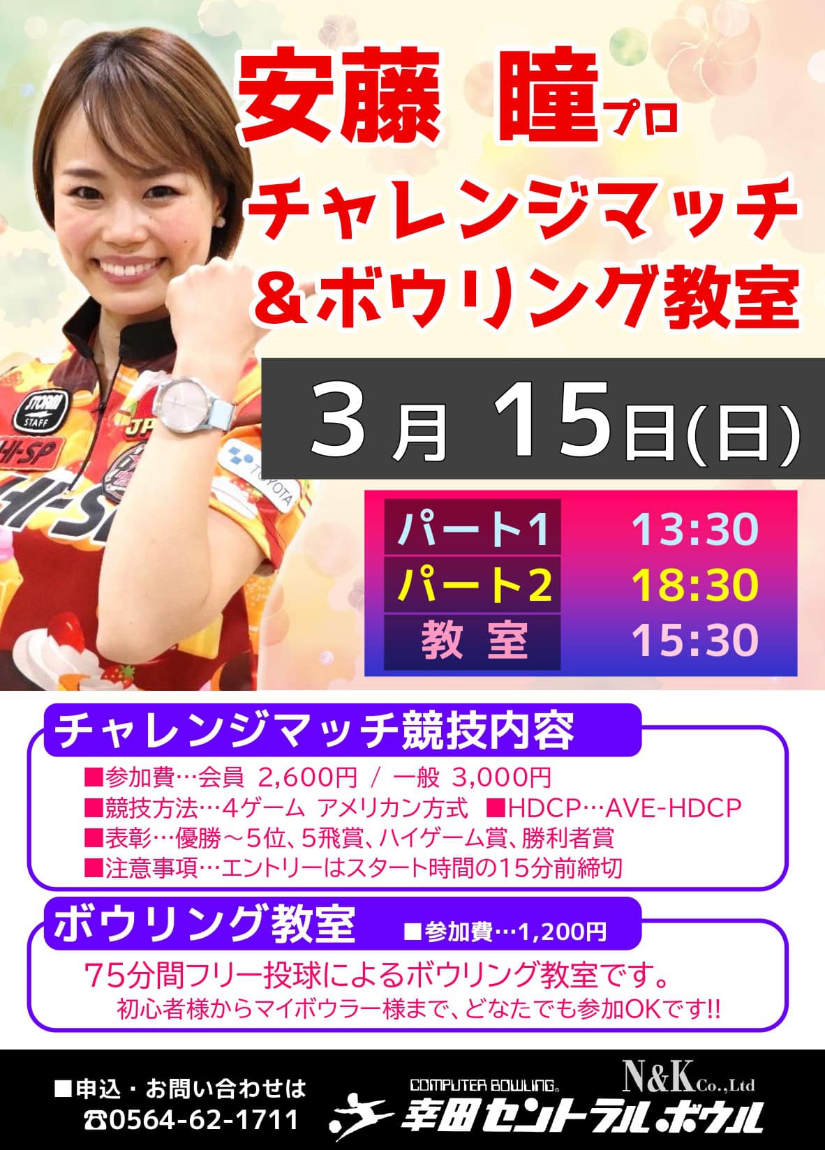 【幸田セントラルボウル】3/15・安藤瞳プロチャレンジ &教室