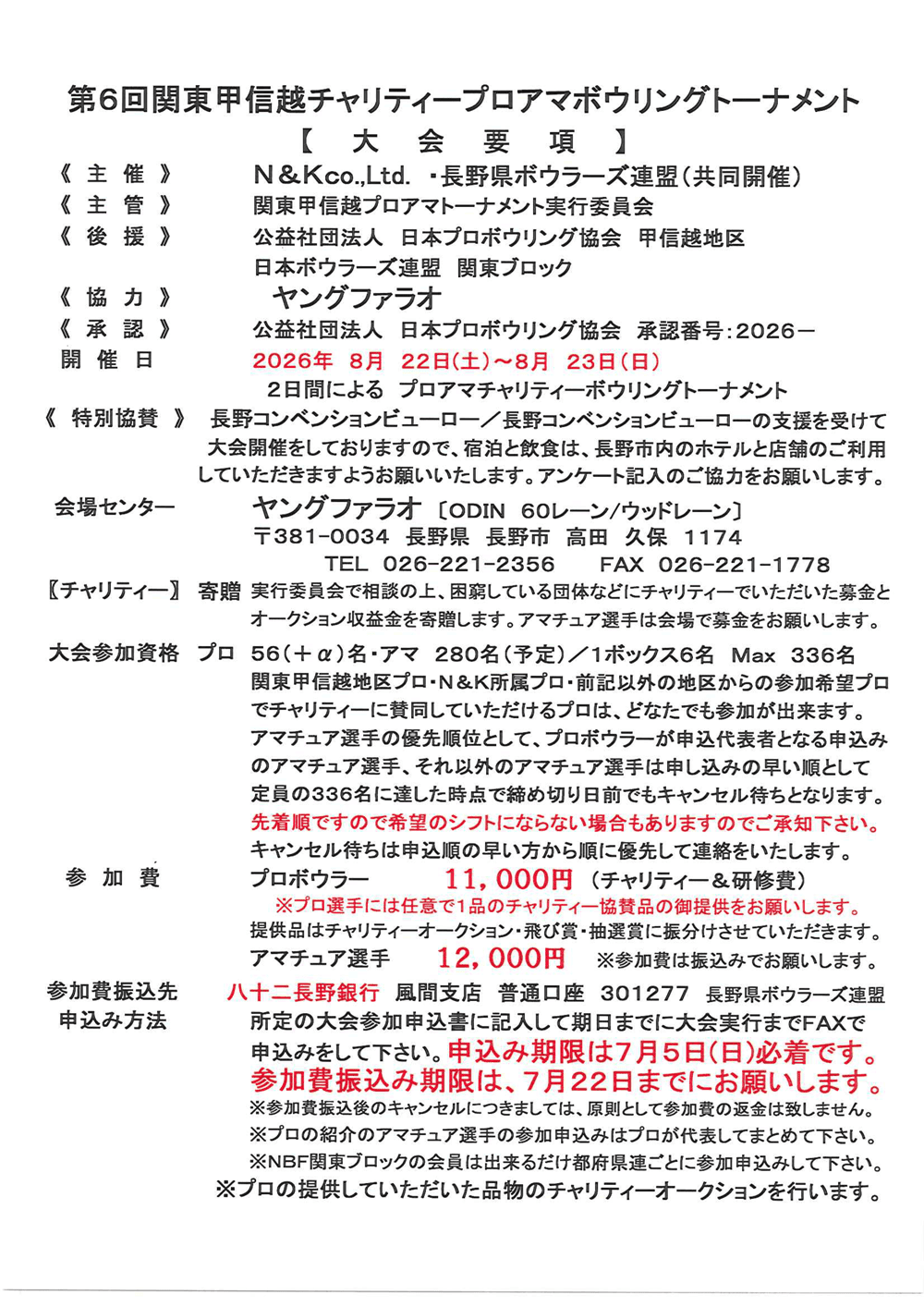 8/22(土)〜8/23(日)・ヤングファラオ・第6回関東甲信越チャリティープロアマボウリングトーナメント