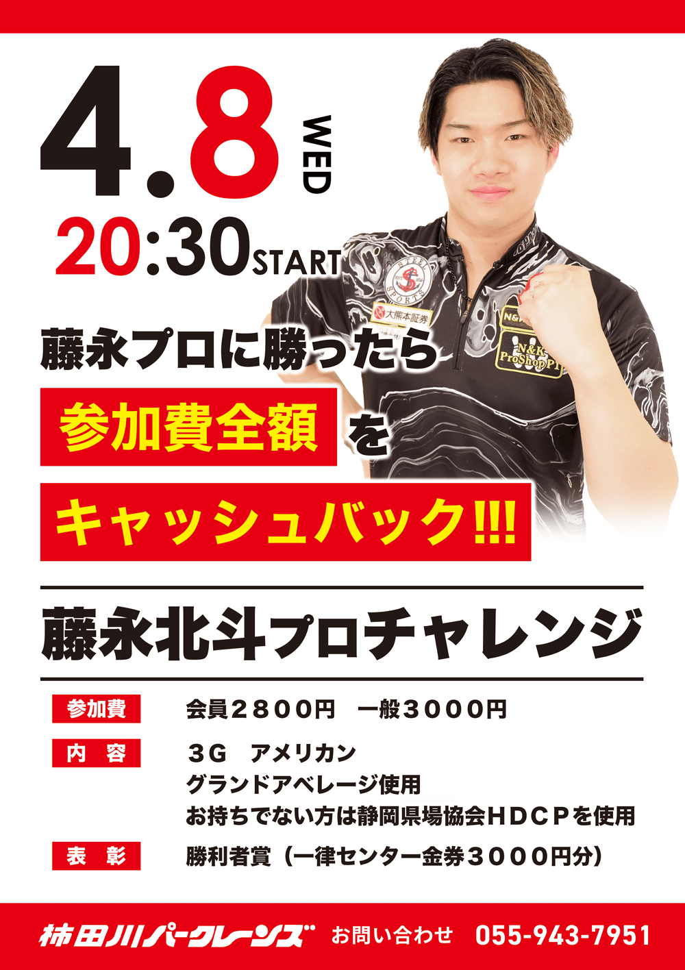 4/12(水)・柿田川パークレーンズ・藤永北斗プロチャレンジ