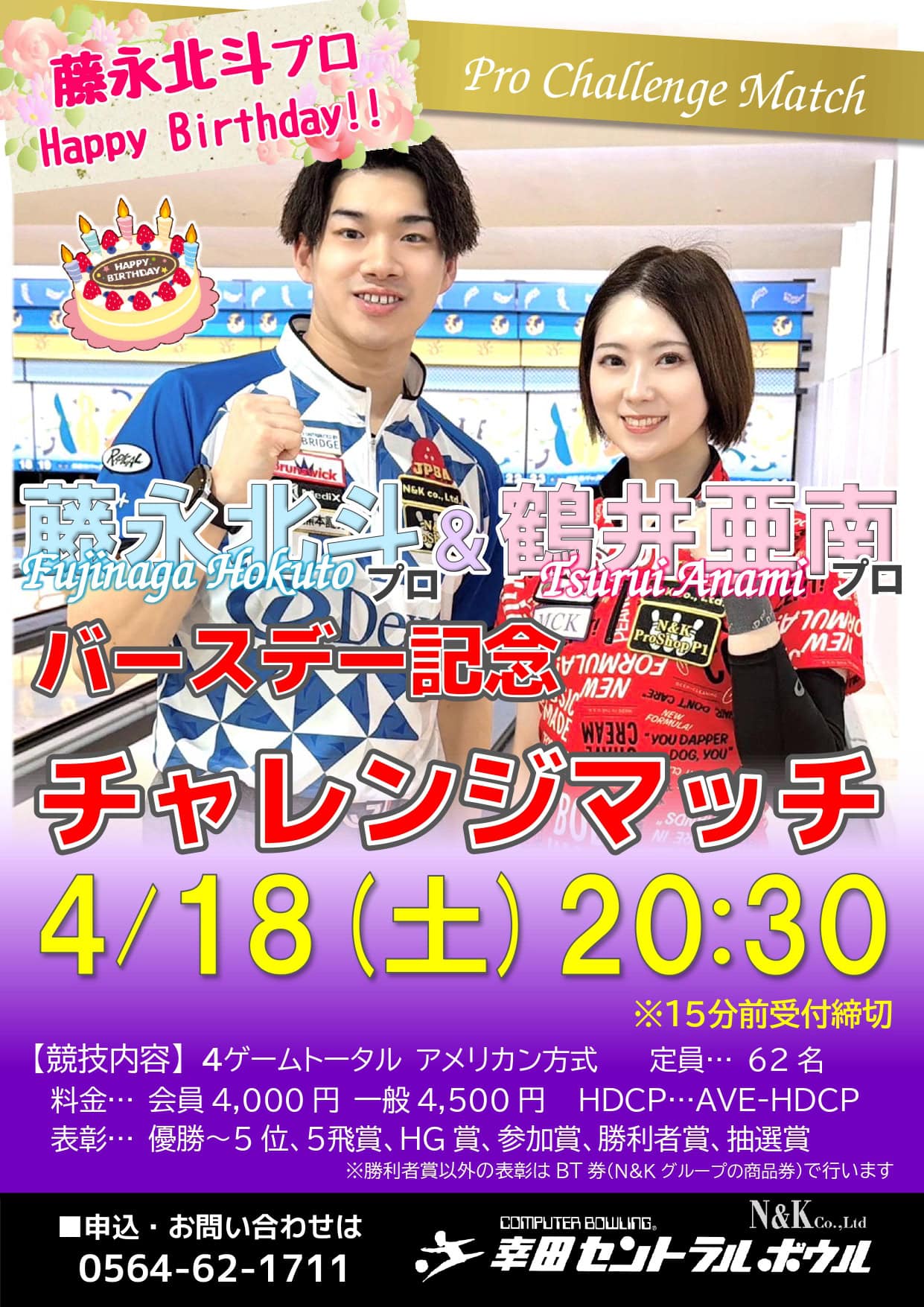 4/18(土)・幸田セントラルボウル・藤永北斗プロ&鶴井亜南プロバースデーチャレンジ
